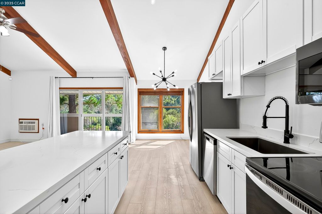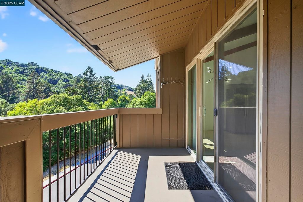 Beautifully remodeled and appointed condo. Check out tour, photos and floor plans. Rare 2-story, 2 bedroom with 2 full baths, end unit with balcony and hillside views. Vaulted ceilings and open floor plan with over-sized family room and spacious kitchen. Separate master bedroom and bathroom with walk-in closet and attic storage on second level. Assigned covered parking spot in front of unit, steps to entry door. Additional parking space (unassigned) with included parking permit. Community pool and clubhouse. Exterior storage locker included. Low monthly HOA dues which include water, garbage, gas water heating, landscaping and exterior building maintenance. All newer appliances included with stackable washer/dryer in interior closet. Air-conditioning unit installed. Custom window coverings included. Plus all that exclusive Moraga boasts for its residents--great public schools, St. Mary's College, nature trails and open spaces, low crime, and proximity to BART, major freeways, and downtown Lafayette/Walnut Creek. Virtual Tour: https://my.matterport.com/show/?m=2w1vFDJTKVt
