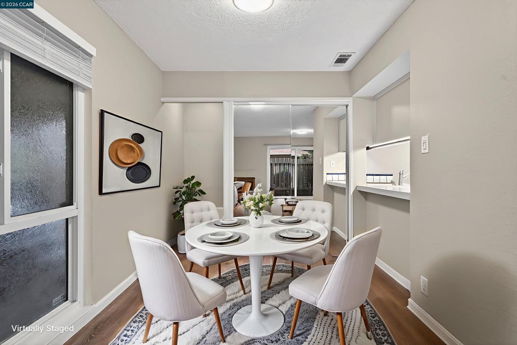 Welcome to Roundtree, Unit A. Set in a peaceful, park-like community, this charming 2-bedroom, 1-bath townhouse offers comfort, privacy, and everyday convenience. The gated front patio provides a quiet outdoor retreat, perfect for relaxing or entertaining. Inside, the open-concept layout connects the living, dining, and kitchen areas for easy living. A large sliding glass door brings in abundant natural light and opens directly to the private patio. Fresh interior paint throughout adds a clean, bright, and welcoming feel. Without neighbors on 3 sides or above, you'll appreciate the sense of privacy this home provides. Enjoy access to the community pool, beautifully maintained grounds, a covered carport conveniently located near the unit, and a nearby community laundry facility. Ideally situated close to Clayton Valley Shopping Center, restaurants, parks, and top-rated schools. This is a great opportunity to enjoy a vibrant community with the amenities that add to your comfort and convenience.